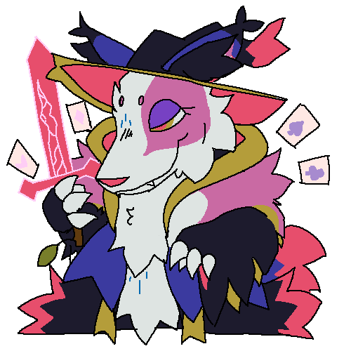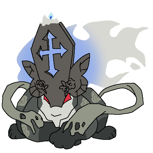 Once a regular typhlosion, he died during a guild exploration and was brought back incorrectly, and managed to revert back into the Hisuian type of Typhlosion. He, however, managed to lose his fire typing, and is just ghost type. He lost his position at the guild, and is now working for Trillium in her potion shop. The two are married, and he regularly works in the shop when she needs help.