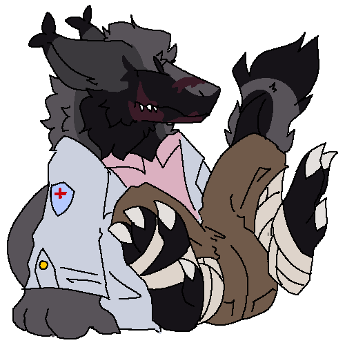 A melanistic white tailed dear who has the same genetic mutation that Konjin has, in which he was born with a set of carnivore teeth. Using this to his advantage, he went into the dental field and runs his own dental clinic. During nights, he works with both groups as a very good “negotiator”.