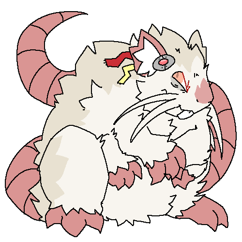 An older raticate that was experimented on by Team Rocket in the human world. He was able to escape and fall into the pokemon world, but tends to keep odd hours.