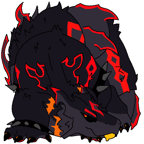 A massive zekrom like beast that lives atop a massive mountain. His skin is leather like and scalding anyone who touches him. He can be heard from miles away, and is rather territorial. Keeps to himself.